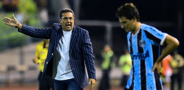 Luxemburgo, técnico do Grêmio, grita com Elano, meia da equipe, durante o jogo com o Caracas
