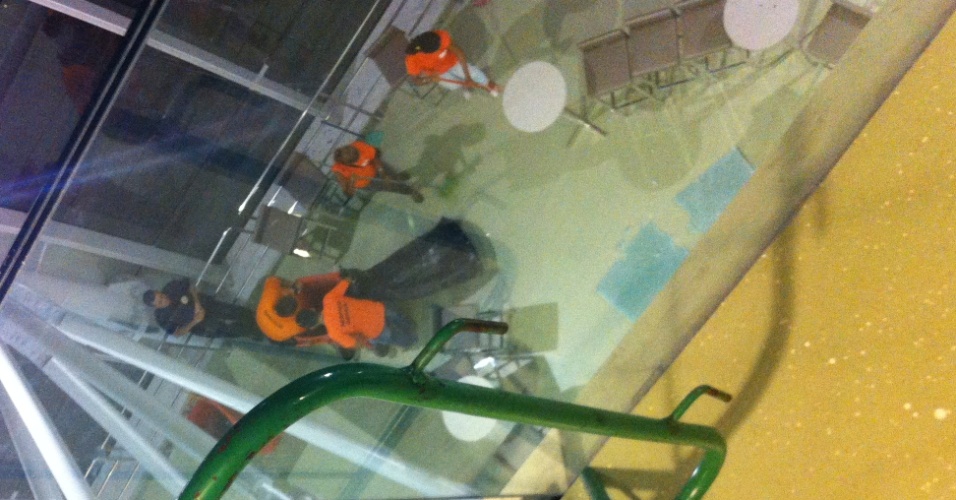 Uma placa de vidro de um metro e meio de altura por um metro de largura despencou de uma altura de dez metros nas dependências internas do Castelão, estádio inaugurado no dia 27 de janeiro deste ano em Fortaleza e que será palco de três jogos da Copa das Confederações, em junho deste ano, e outros seis da Copa do Mundo de 2014. Ninguém ficou ferido.